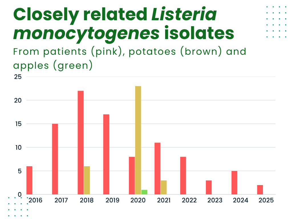 He suggests the multi-year occurrence of closely related L. monocytogenes isolates in potatoes and patients constitutes a ‘low and slow’ outbreak.