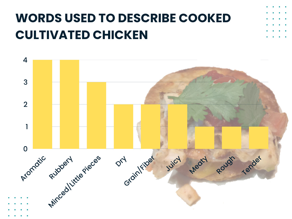 The characteristic of the meat that elicited the most responses was its texture, with descriptors such as “rubbery”, “minced meat”, and “sliced just like conventional chicken” used by tasters.