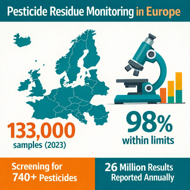 In 2023, inspection services across the European Union, plus Iceland and Norway, analysed around 133,000 food samples for pesticide residues. ๐๐% ๐ฐ๐๐ซ๐ ๐๐จ๐ฆ๐ฉ๐ฅ๐ข๐๐ง๐ญ according to the European Food Safety Authority (EFSA) report, meaning either residue-free or within the applicable Maximum Residue Levels (MRLs).