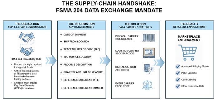 Section 204 of the Food Safety Modernization Act (FSMA), the Food Traceability Rule, directed the United States Food and Drug Administration (FDA) to move the United States from a reactive to a proactive food safety posture through enhanced product traceability.