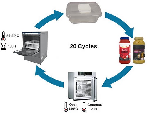 The scientists compared containers made from virgin PP homopolymer, virgin PP copolymer and post-industrial recycled PP during repeated test cycles that simulated oven heating and dishwasher washing.